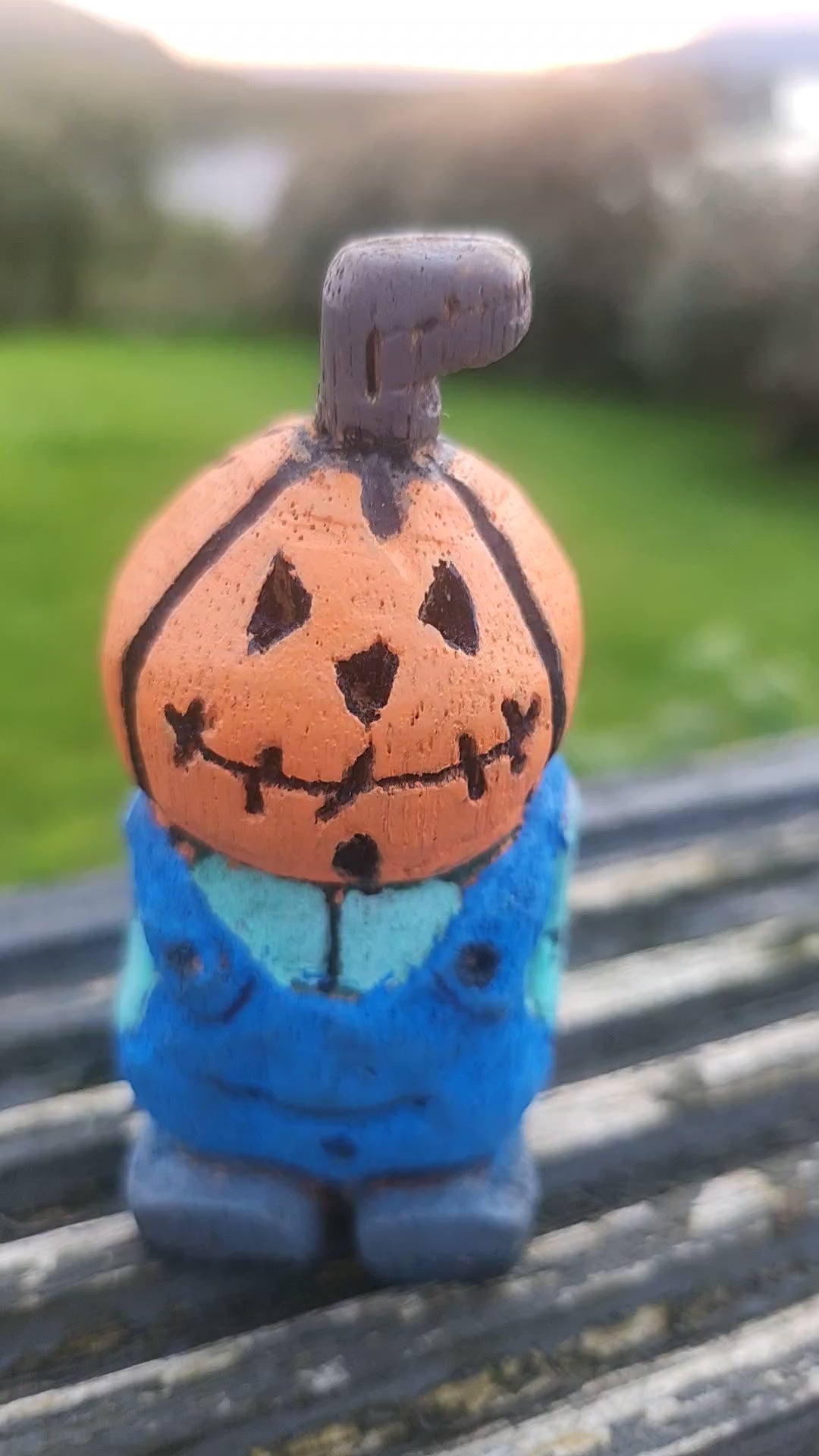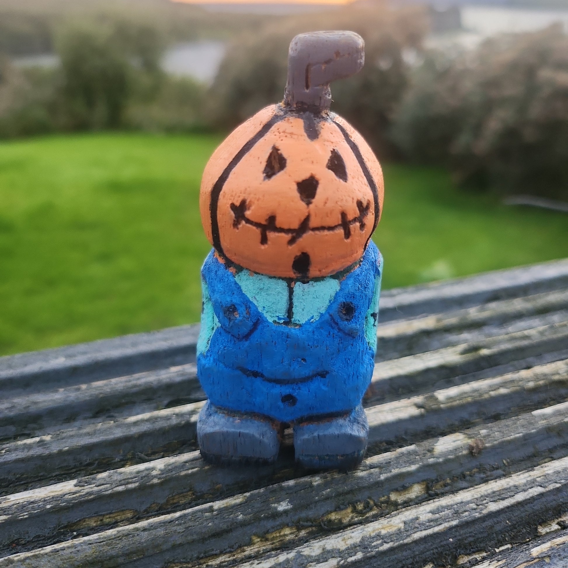 'Pumpkin Pete' has been hand carved from beechwood and painted with acrylic paint by An Carn Crafts.